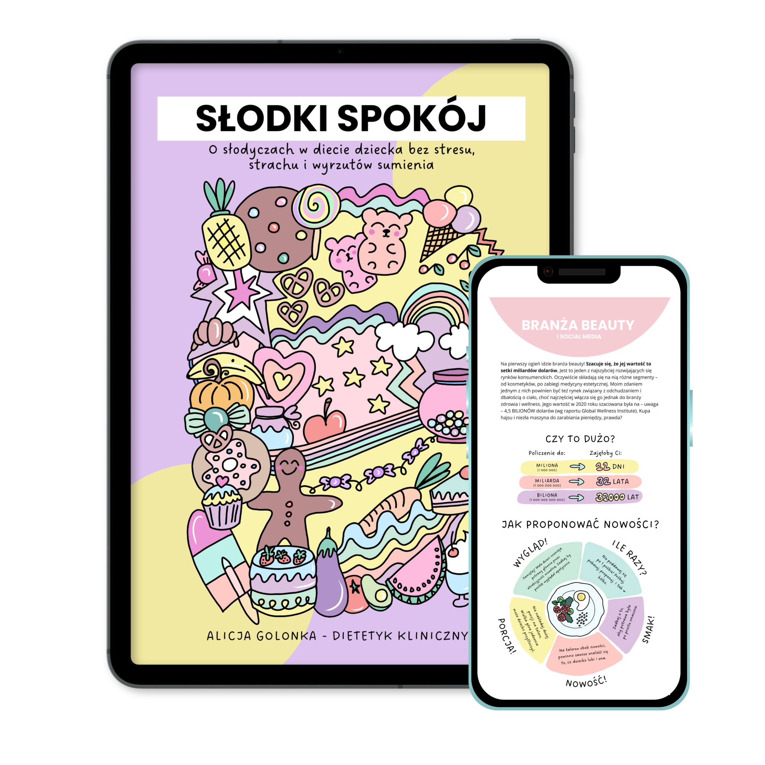 E-book Słodki Spokój to przewodnik po słodyczowym labiryncie serwowanym przez: social media, supermarkety, babcie, ciocie i… zdrowy rozsądek.